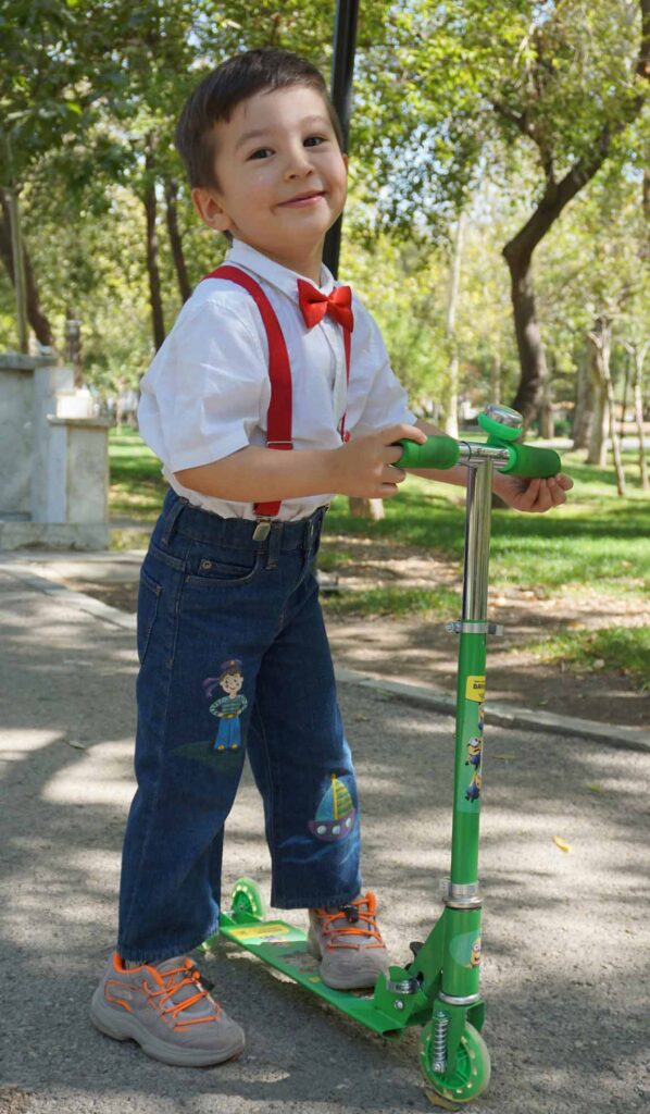 I paint on the front side of my son’s trousers so he can see and enjoy them while wearing them. We choose photos from Pinterest, and I customise them. Taking photos is challenging because my son isn’t always in the mood for taking photos most of the time, so I enjoy capturing moments of him playing.